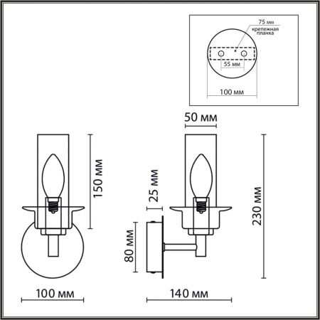 Высота светильника (мм) : 200