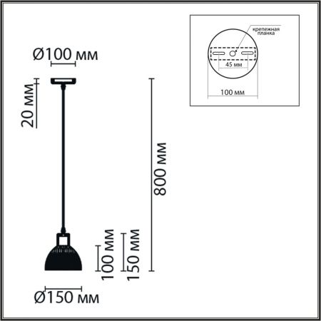 Высота светильника (мм) : 800