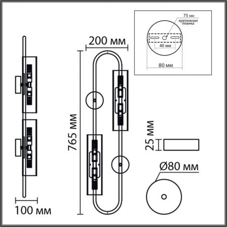 Высота светильника (мм) : 765