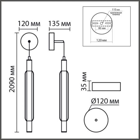 Высота светильника (мм) : 2090
