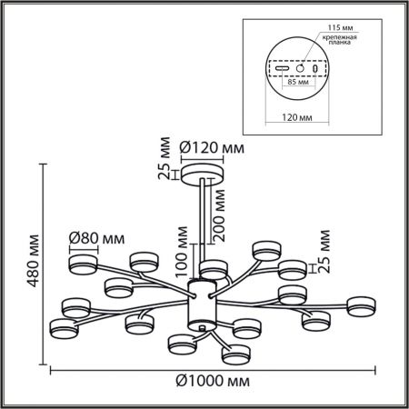 Высота светильника (мм) : 480