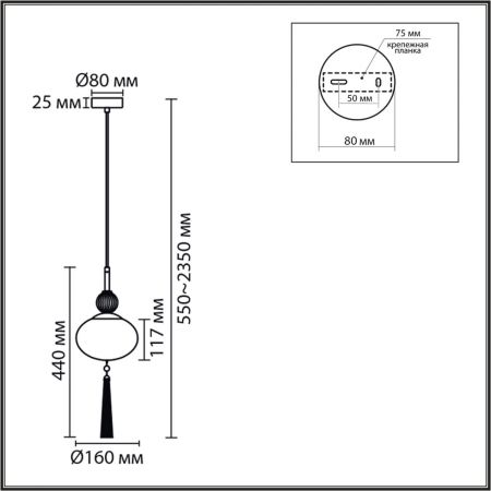 Высота светильника (мм) : 2350