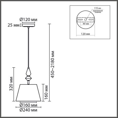 Высота светильника (мм) : 2180