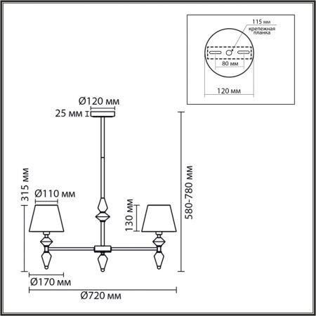 Высота светильника (мм) : 780
