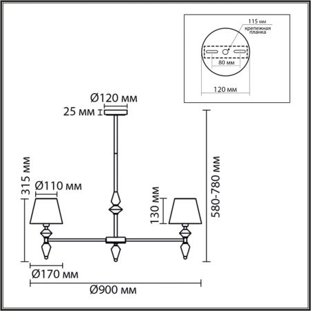Высота светильника (мм) : 780
