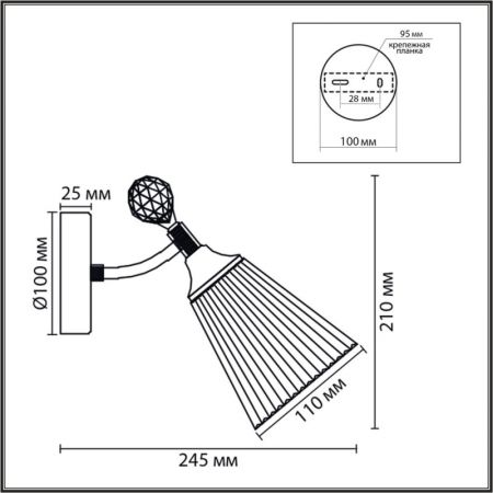 Высота светильника (мм) : 210