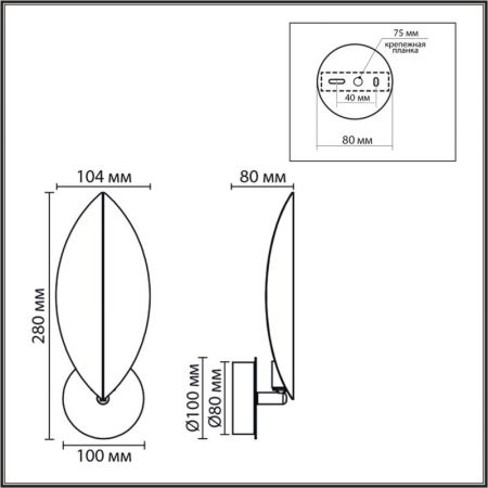 Высота светильника (мм) : 280