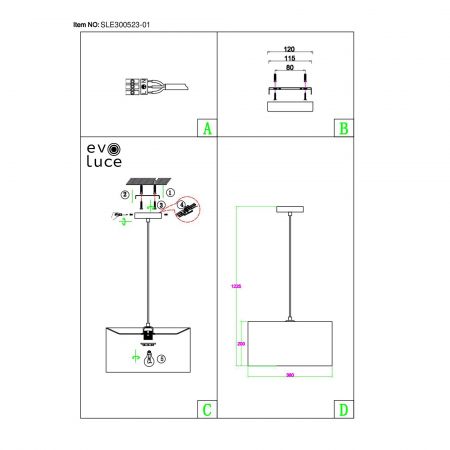 Высота подвеса (мм) : 1000