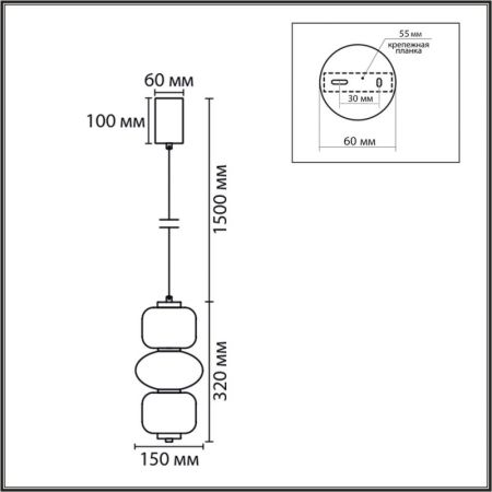 Высота светильника (мм) : 1820