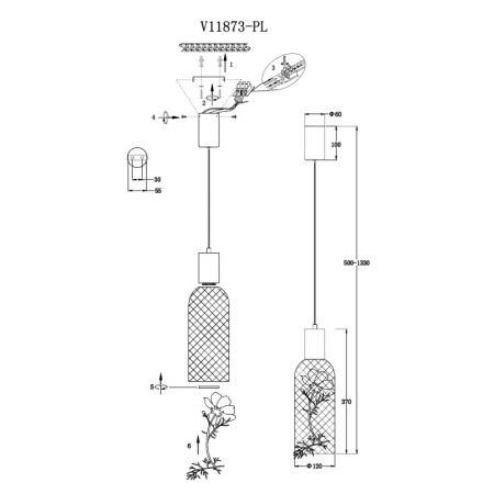 Высота светильника (мм) : 1330
