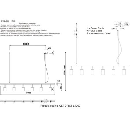 Высота светильника (мм) : 1500